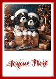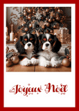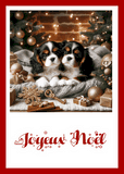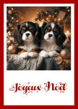 5 Cartes "Joyeuses Fêtes" CKC duo chiots avec enveloppes rouges
